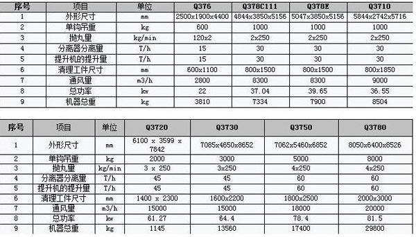 二、 Q37系列吊鉤拋丸清理機技術參數