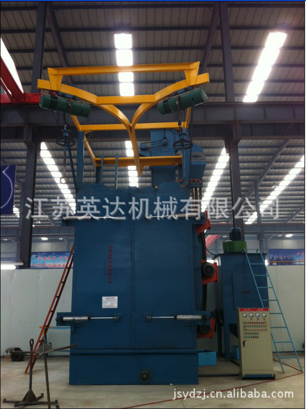 Q3750大型吊鉤式拋丸機主要用于中型鑄件及結構件的拋丸清理。通過拋丸清理,不但可以去除工件表面的銹蝕、氧化皮、型砂等,還可以降低工件的內應力,提高工件的抗疲勞強度。尤其對怕碰撞的細長薄壁件表面清理或強化更為適宜。
