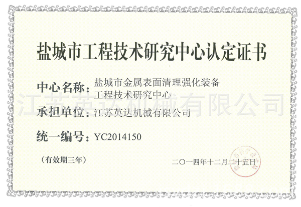 公司率先通過ISO9001:2008質量管理體系認證、ISO14001:2004環境管理體系認證。擁有一支專業的技術團隊,先后取得了網帶通過式拋丸機、新型機械回收噴砂房、輥道通過式重鋼拋丸機等三十項產品專利和10項江蘇省高新技術產品。(注:各項產品專利及所有證書詳見企業官網:http://www.ydzj.net/或阿里誠信檔案)